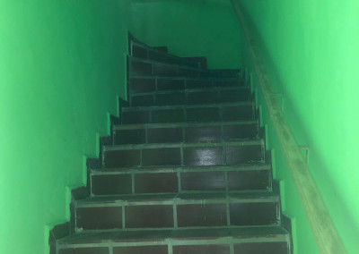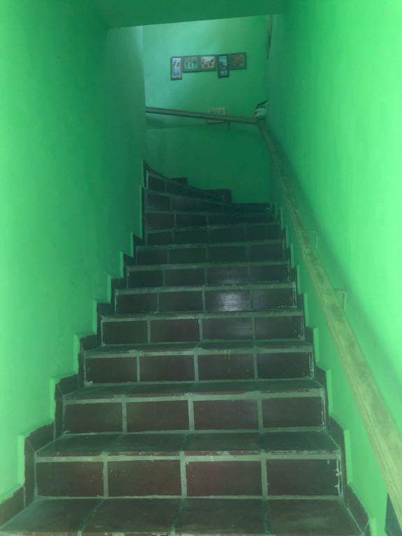 Imóvel fica no 1º andar de escada com uma vaga de garagem.